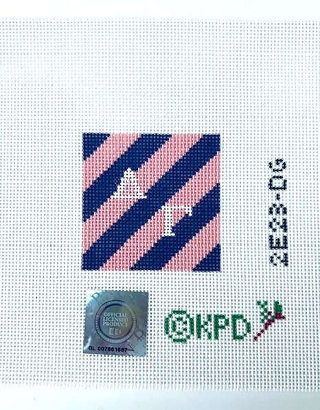 - This 2″ x 2″ square needlepoint canvas features classic rep stripes in the sorority colors of blue and pink, with greek letters in white