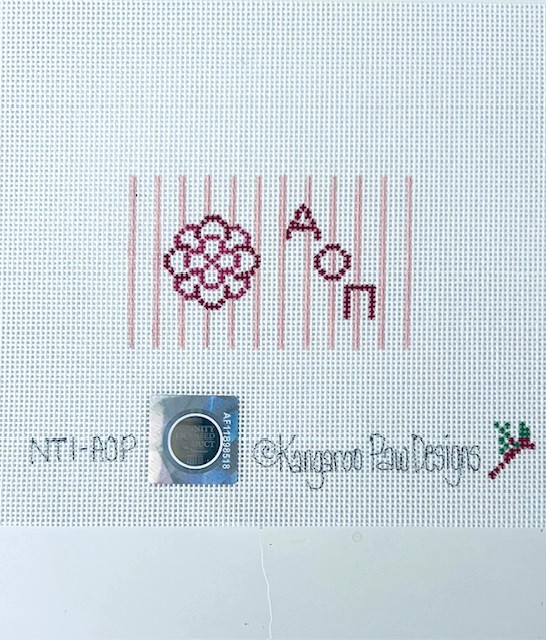 - Classic pinstripes accent this 2″ x 3″ rectangle featuring the Greek letters and the Infinity Rose in the sorority colors of red, white, and pink