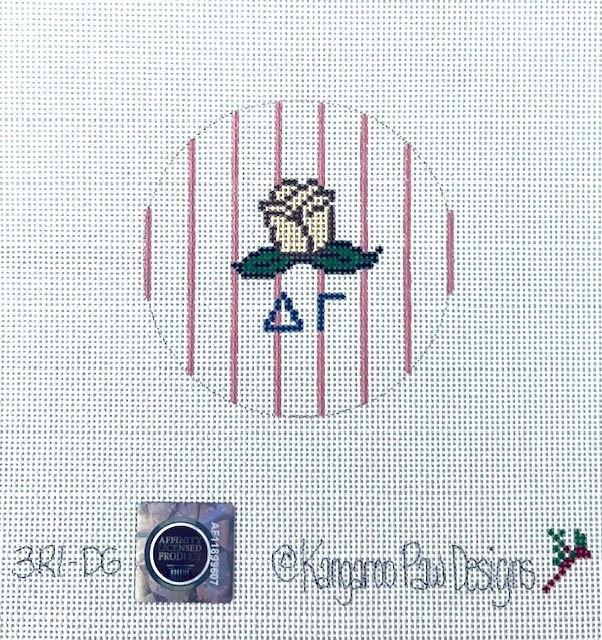 - This 3″ round features the sorority letters and flower, the cream rose, on a background of pinstripes-all in the sorority colors of pink and blue