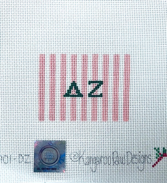 - Inspired by a classic monogram on an Oxford stripe shirt, this 2″ x 3″ rectangle features the Greek letters and stripes in the sorority colors of pink and green
