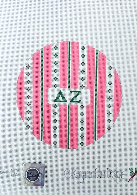 - Large round features a retro stripe pattern in sorority colors