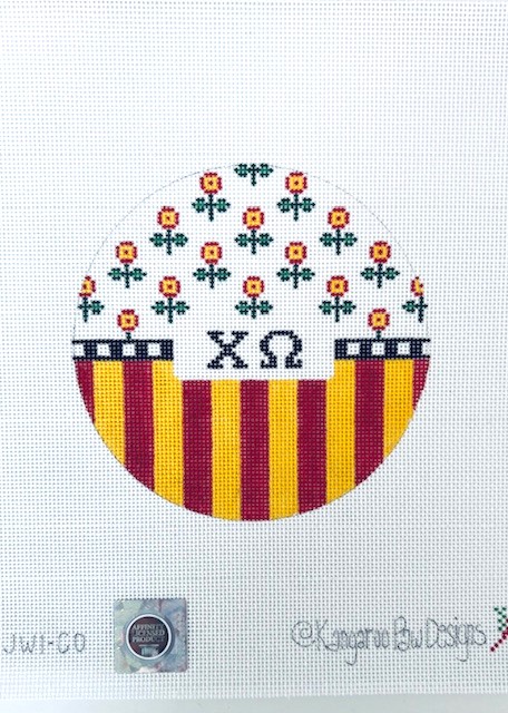 Large Round With Flowers and Stripes-Chi Omega