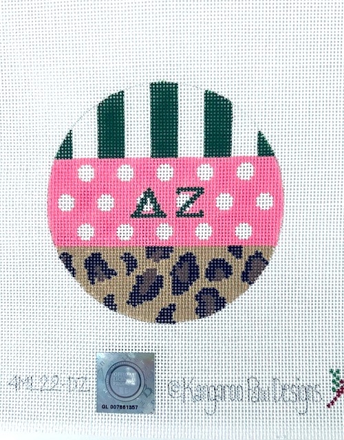 Fun multi pattern round features sorority colors and leopard print