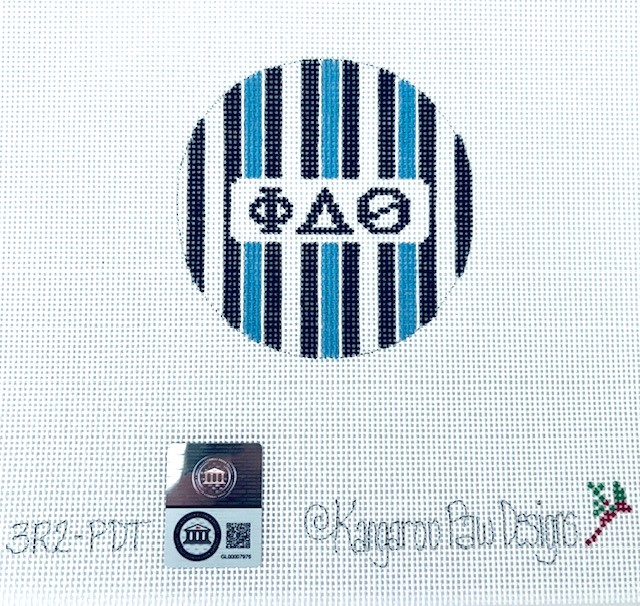 - One of our bestselling designs, this 3″ round features bi-color stripes in the fraternity colors of navy blue and azure blue, along with the group’s greek letters