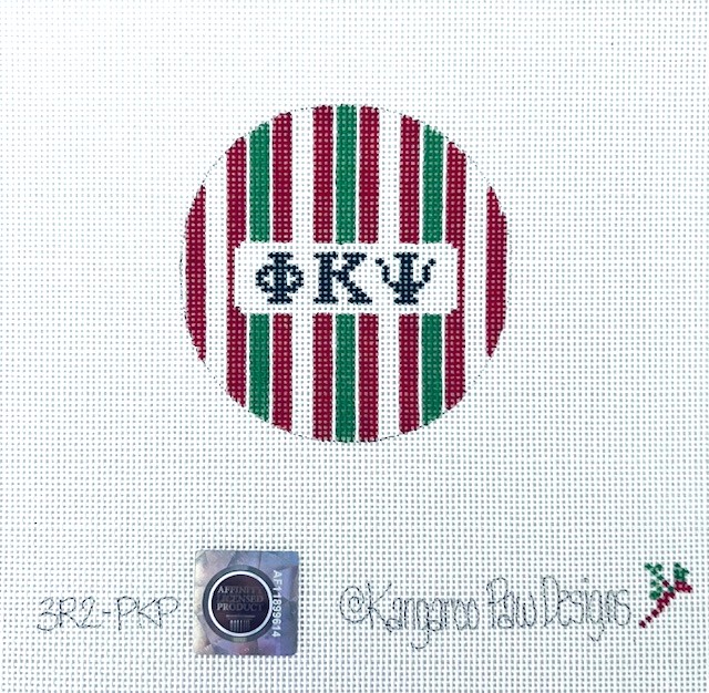 - One of our bestselling designs, this 3″ round features bi-color stripes in the fraternity colors of red and green, along with the group’s greek letters