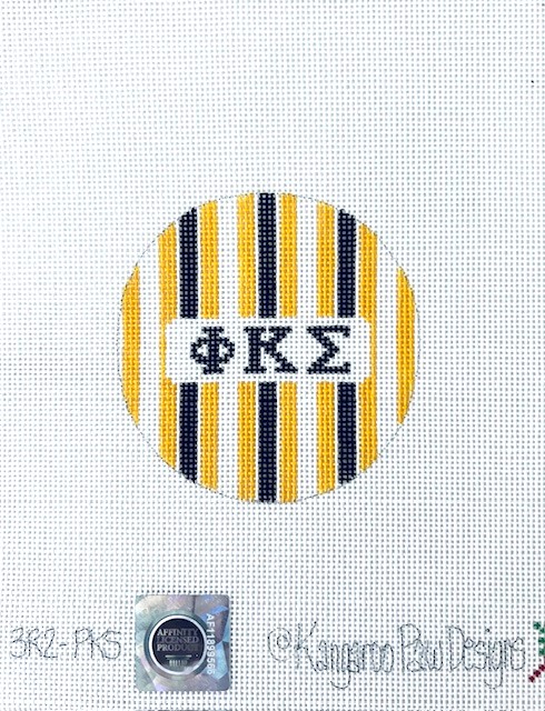 - One of our bestselling designs, this 3″ round features bi-color stripes in the fraternity colors of black and gold, along with the group’s greek letters