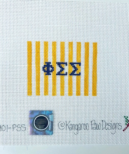 - Inspired by a classic monogram on an Oxford stripe shirt, this 2″ x 3″ rectangle features the group’s letters and stripes in royal blue and gold