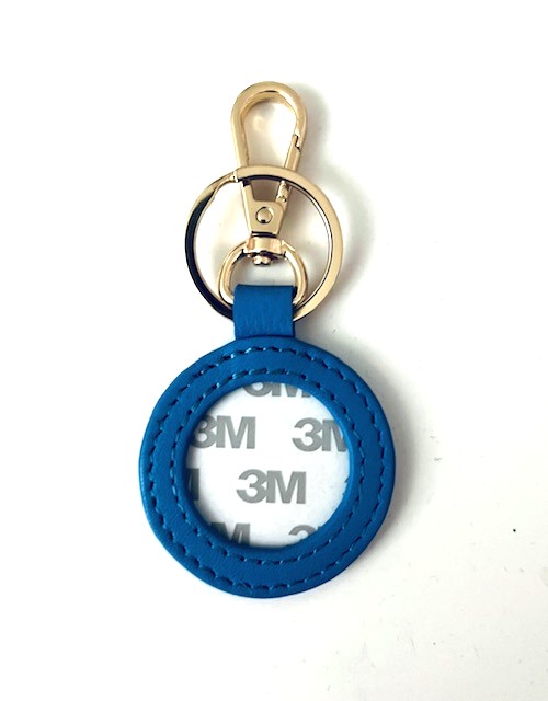 - 2″ round blank leather key fob by Planet Earth accommodates an approximately 1.5″ stitched needlepoint canvas