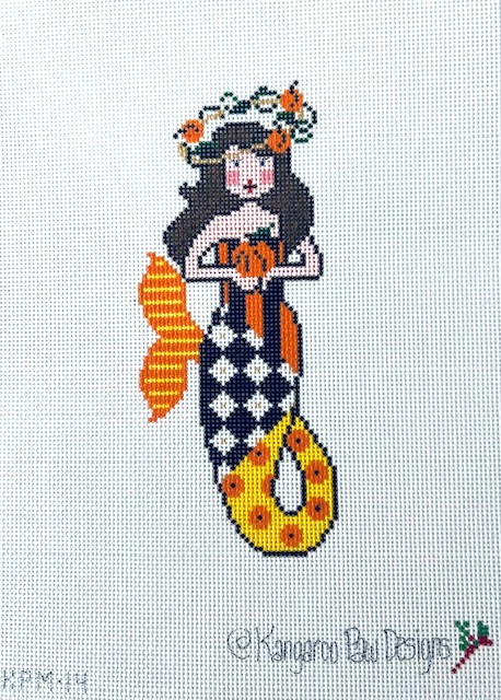 - Full of fall color and pattern, this cute little mermaid sports tiny pumpkins in her halo, and holds a jack-be-little