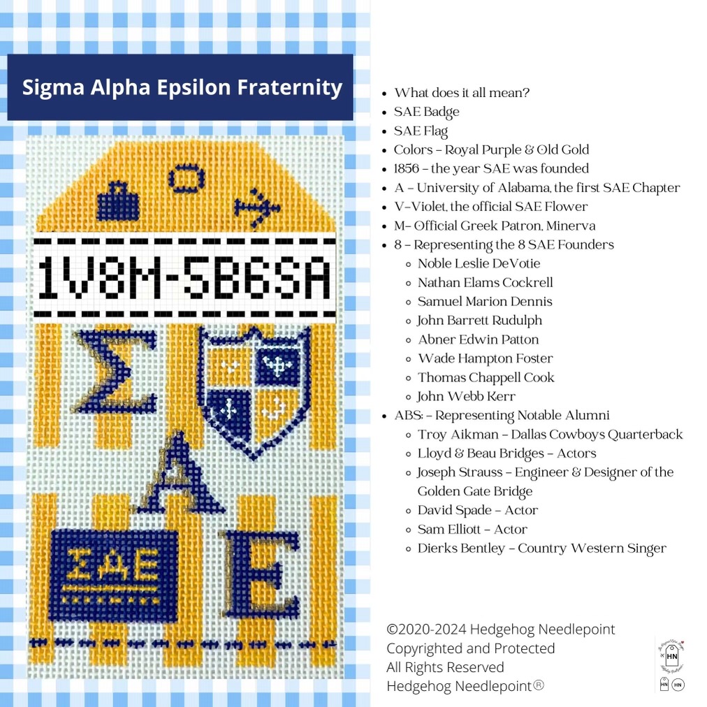 - Retro travel tag shape, concept, and secret codes are used in collaboration with, and under license to, Hedgehog Needlepoint LLC copyright 2020-present