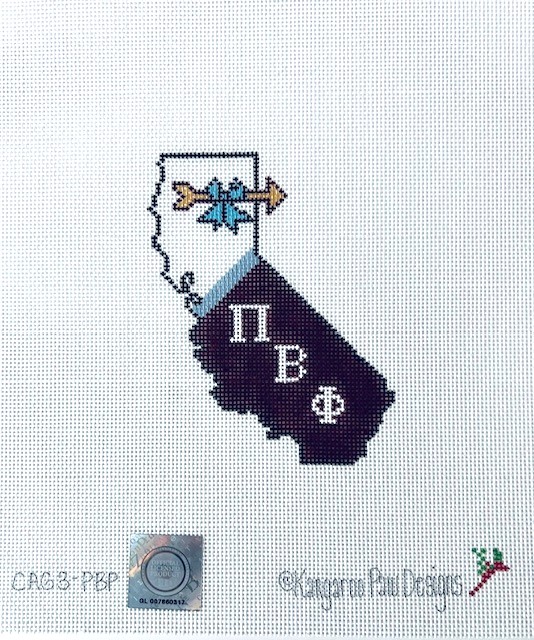 - Part of our State Greek series, show your Greek state pride with this fun needlepoint canvas featuring the sorority colors, letters, and mascot, set in the state of California