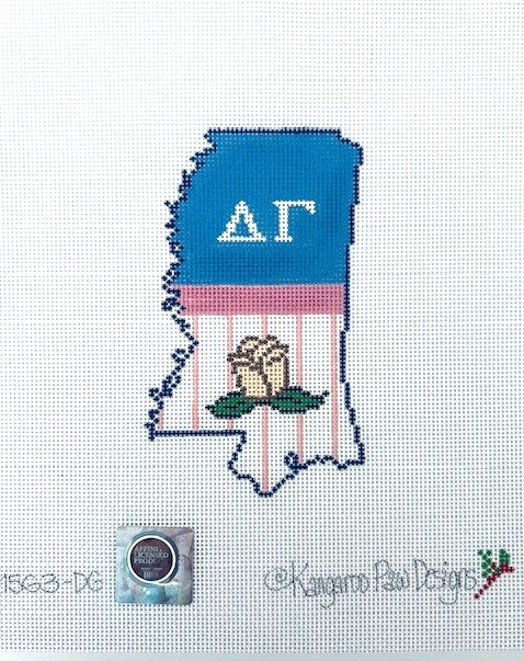 - Part of our State Greek series, show your Greek state pride with this fun needlepoint canvas featuring the sorority colors, letters, and flower, set in the state of Mississippi