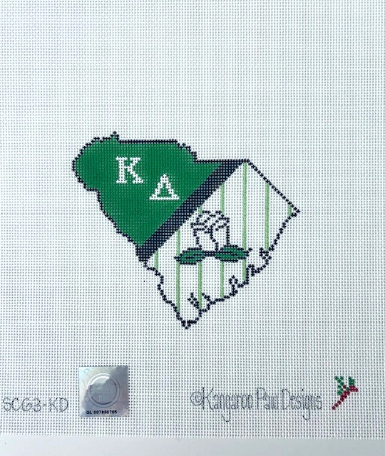 - Part of our State Greek series, show your Greek state pride with this fun needlepoint canvas featuring the sorority colors, letters, and mascot, set in the state of South Carolina