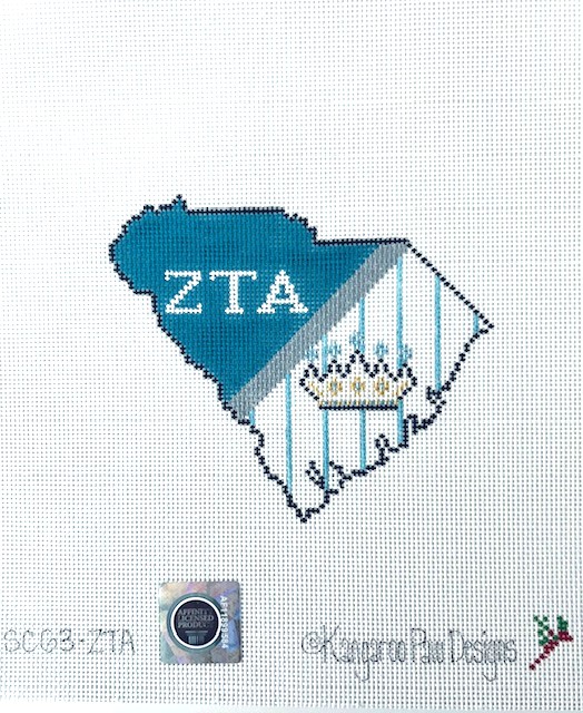 - Part of our State Greek series, show your Greek state pride with this fun needlepoint canvas featuring the sorority colors, letters, and mascot, set in the state of South Carolina