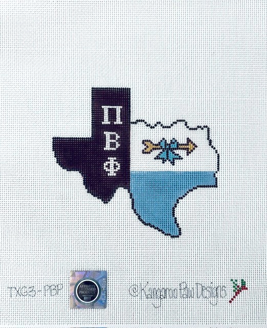 - Part of our State Greek series, show your Greek state pride with this fun needlepoint canvas featuring the sorority colors, letters, and mascot, set in the state of Texas