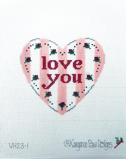 - Pretty pastel pink stripes and tiny rosebud accents highlight a classic Valentine’s Day saying of “Love You” painted in our signature Kangaroo Paw Designs font