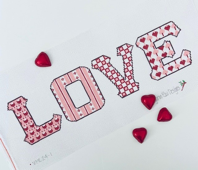 - Stitch something sweet! Part of our holiday bolster collection, this canvas features large multi pattern letters on 13 mesh